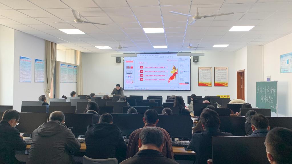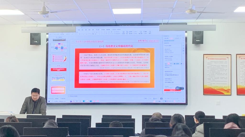 12月7日下午,文学院院长张爱民在薛城校区豁然楼A417以《中国式现代化推进中华民族伟大复兴——关于党的二十大精神的认识和体会》为题作宣讲,文学院全体教职工参加。