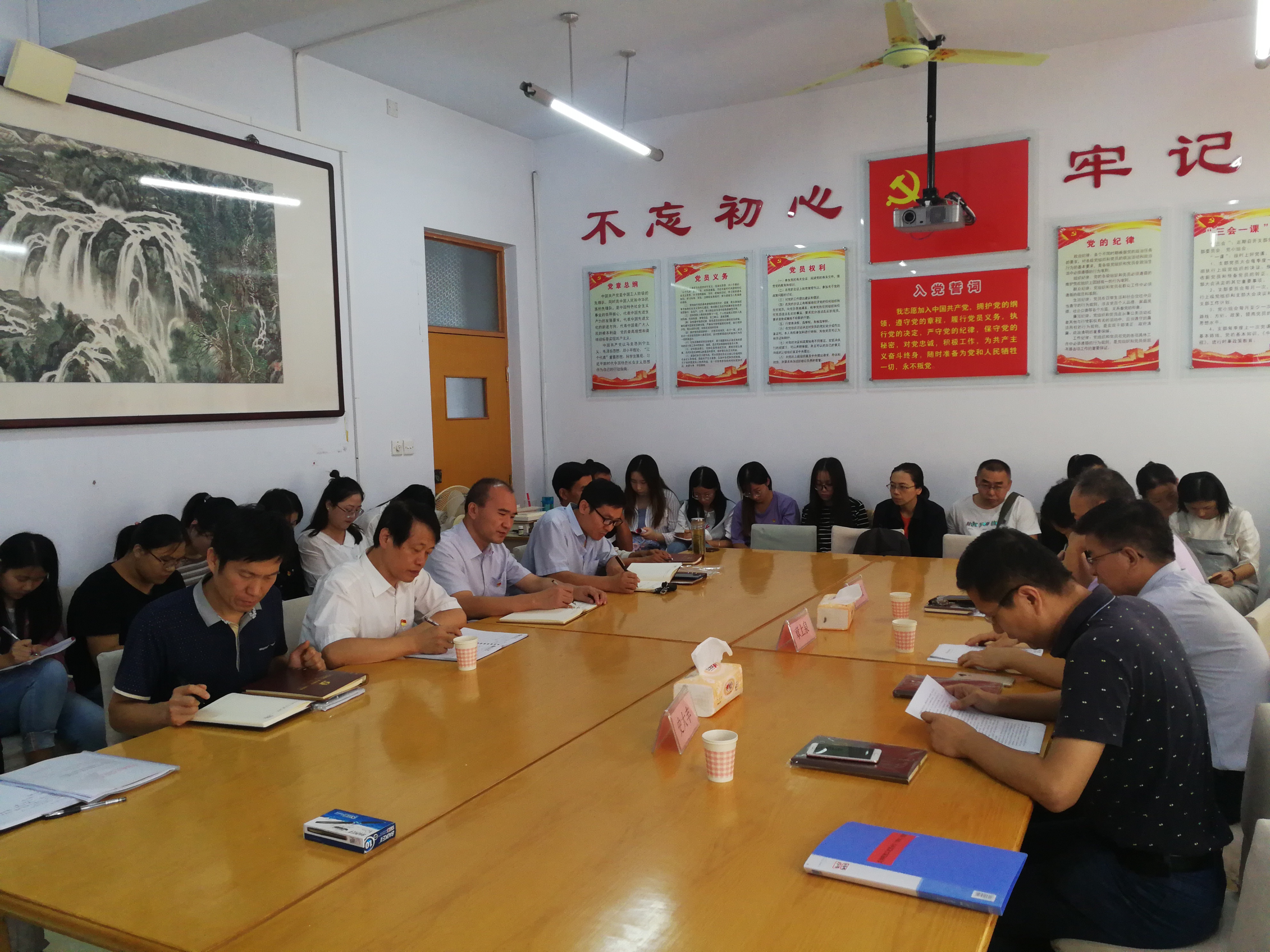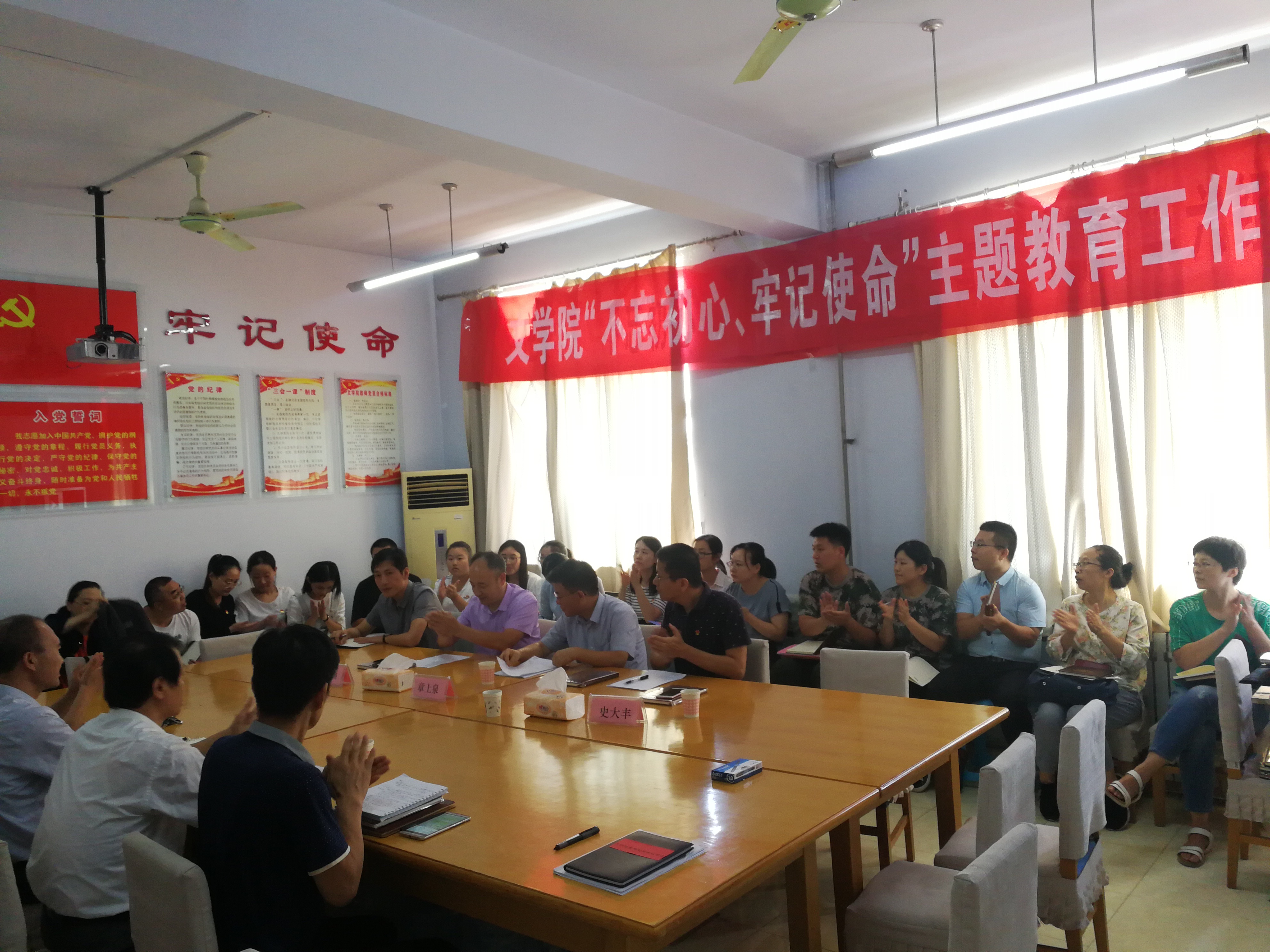 9月18日下午,文学院在2019会议室召开“不忘初心、牢记使命”主题教育工作会议,对学院开展“不忘初心、牢记使命”主题教育进行动员部署。学校第三巡回指导组组长章上泉作指导讲话,院党总支书记史大丰作动员讲话,院长杨全顺主持会议。学校第三巡回指导组成员张轶、学院班子成员、全体教师党员、学生党员参加了会议。