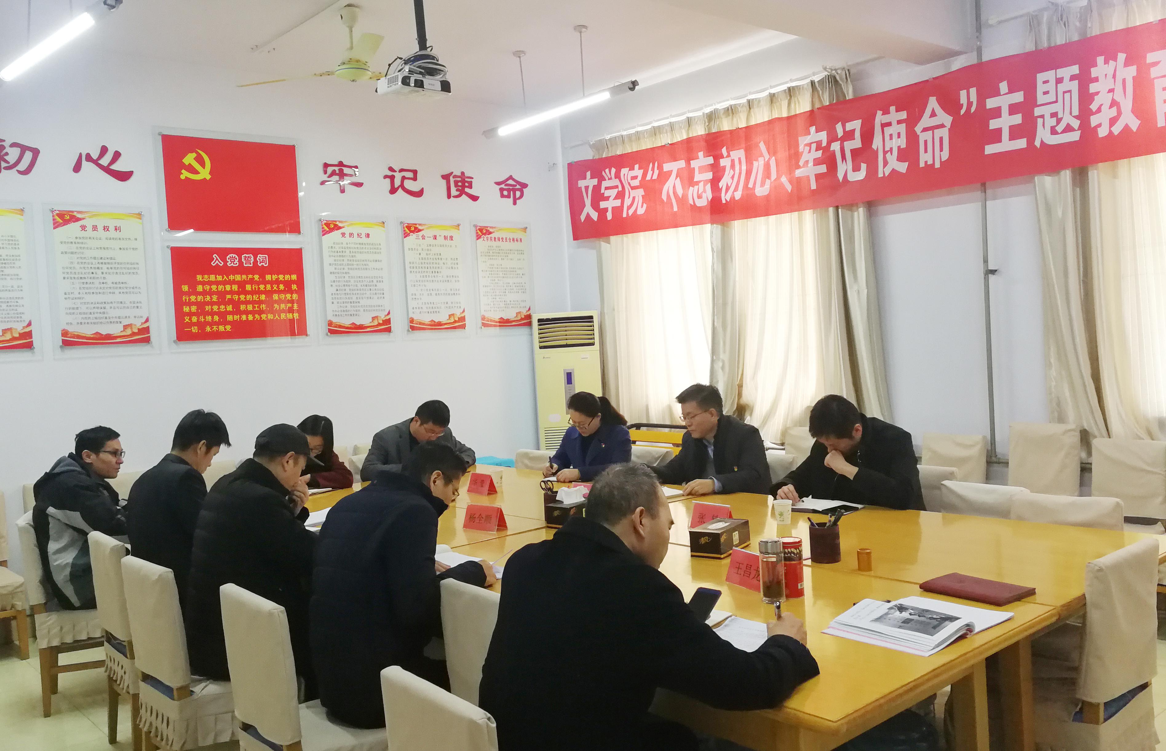 12月6日上午,文学院党总支“不忘初心、牢记使命”专题民主生活会在219会议室召开。学校第三巡回指导组组长章上泉,成员华莹、张轶出席会议,文学院党总支班子成员、支委会成员参加会议,会议由文学院党总支书记史大丰主持。
