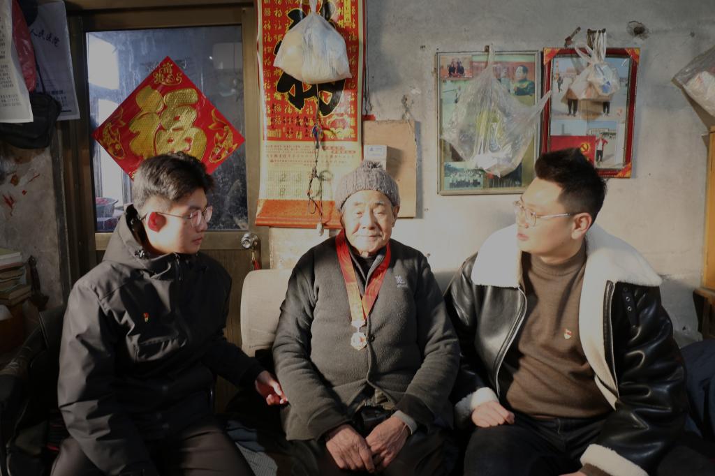 捐赠活动结束后,文学院党员师生还看望了陆庄五十余年党龄的困难老党员刘长玉,进行了慰问关爱老党员活动。
