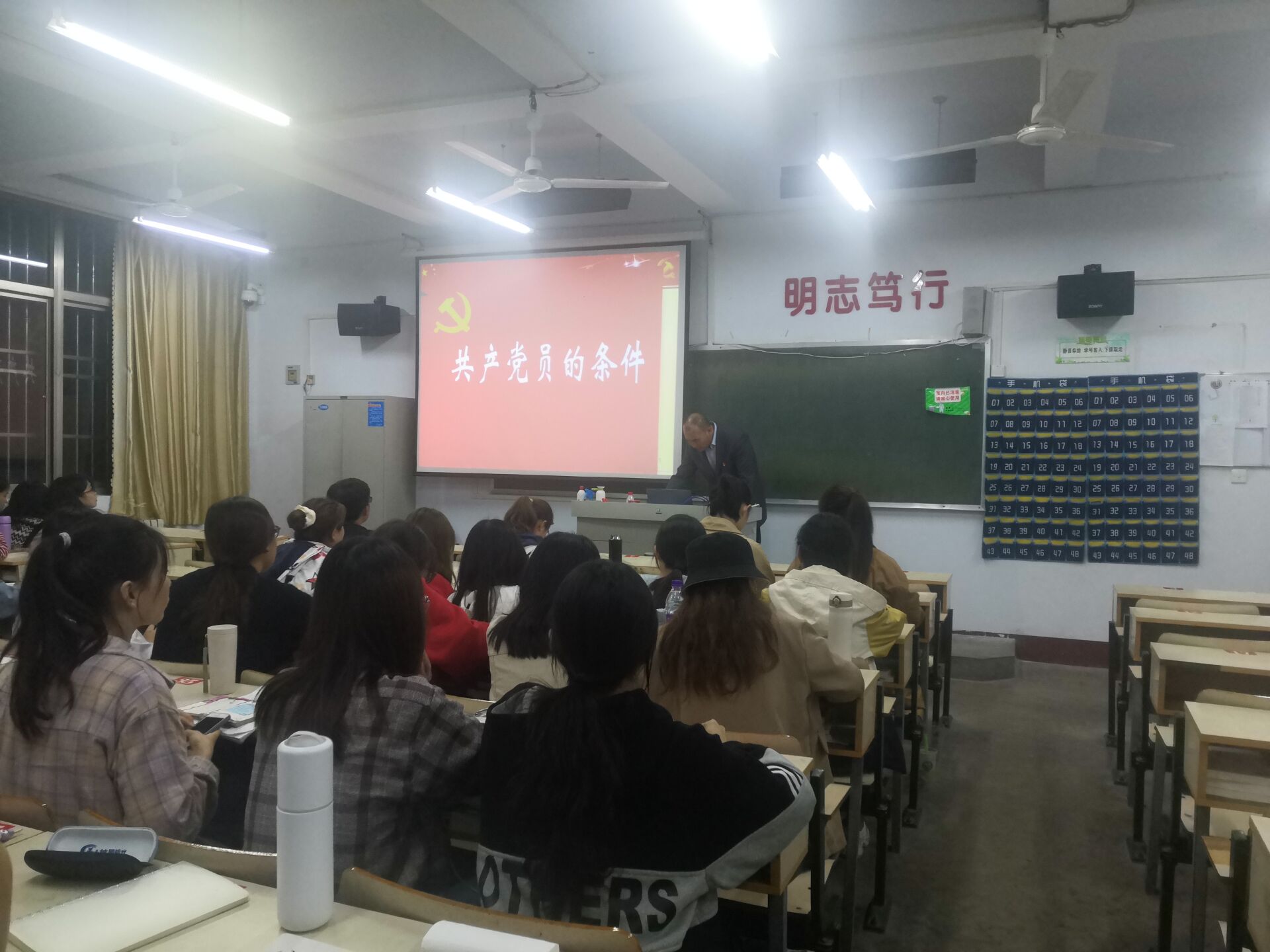 王昌龙老师直奔主题,首先介绍了本次党课培训的目的以及主要内容,简明介绍了成为党员的基础条件、基本条件和具体条件,使同学们对本次课程有了一个大致了解。之后,王昌龙老师通过举例深入浅出、详细地讲述了基础条件的前提地位及包含内容,基本条件的核心地位和重要内涵,具体条件的规范作用和党的先进性、战斗力,加深了同学们对党的性质、指导思想、党纲党章、党员的权利和义务的基本认识,进一步增强了同学们对党的整体认识。