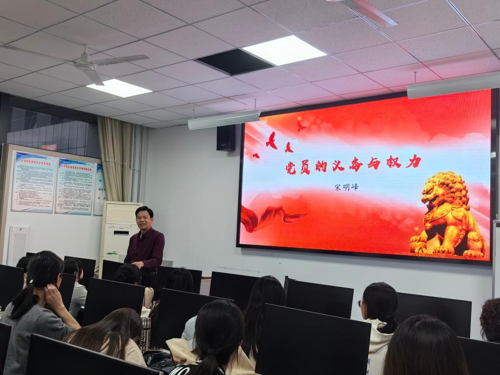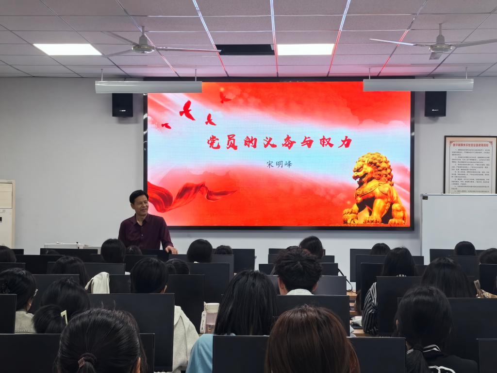 为切实提高入党积极分子的政治素养与理论水平,4月23日,文学院党委书记宋明峰在豁然楼A417室讲授专题党课,第40期入党积极分子参加。