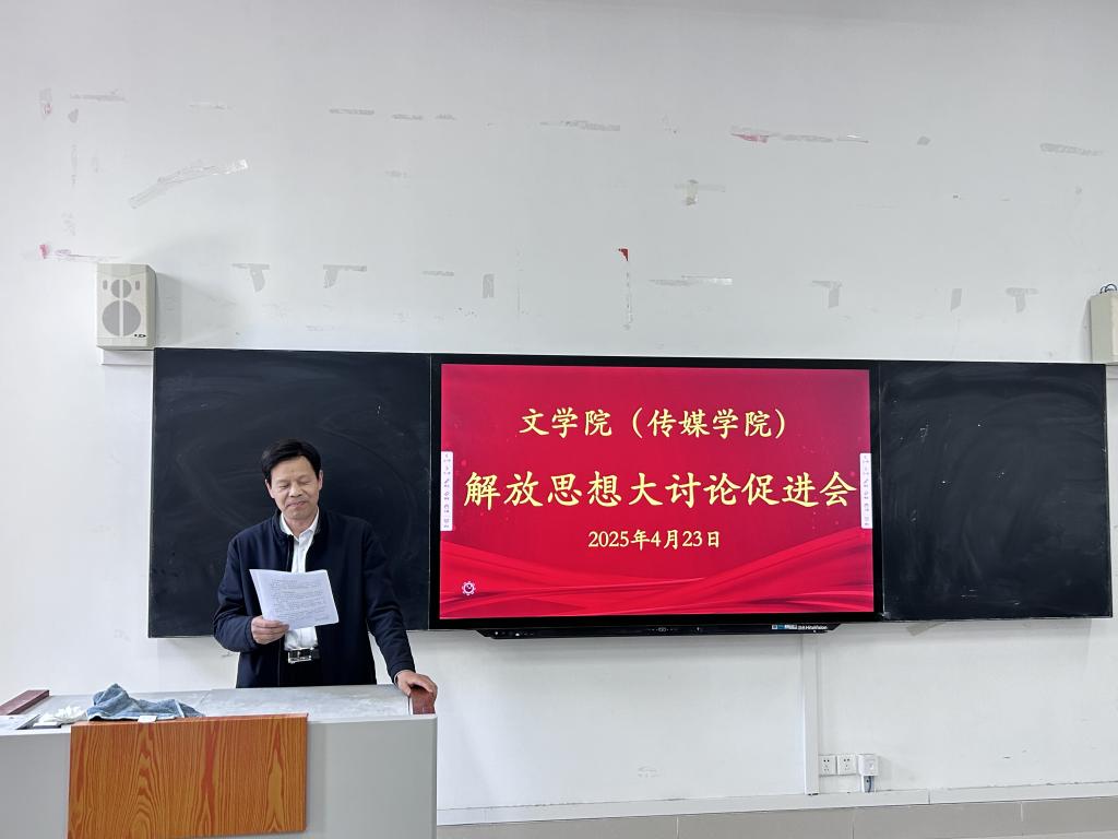 2025年4月23日下午2:00,文学院党委在德艺楼102教室召开解放思想大讨论促进会,党委书记宋明峰强调了解放思想大讨论的重要意义并传达了学校相关文件,院长张爱民就新起点新跨越解放思想大讨论工作进行部署,万象城娱乐awc线路教职工120余人参加会议。