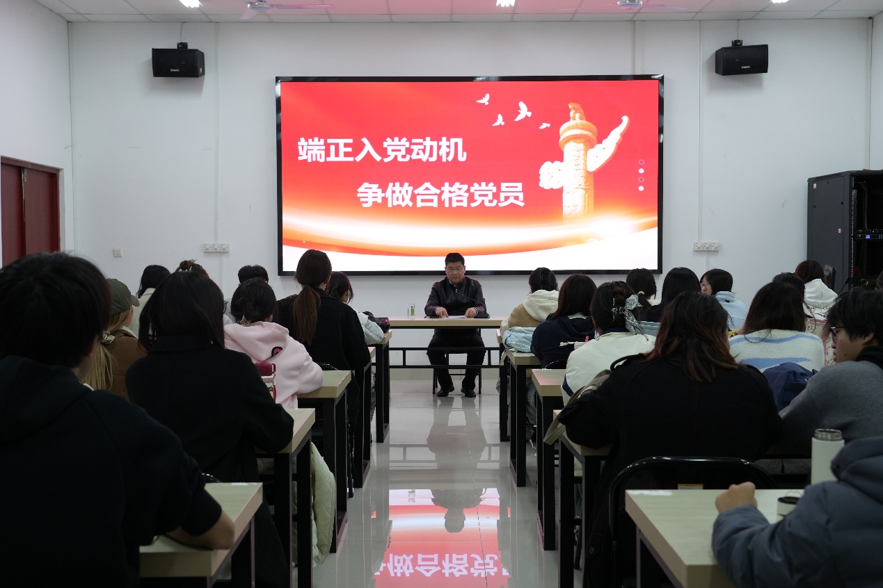 为了切实加强入党积极分子队伍建设,10月24日晚,万象城娱乐awc线路党委副书记周玉亮于博雅楼B102教室为入党积极分子讲授“端正入党动机,争做合格党员”的党课。