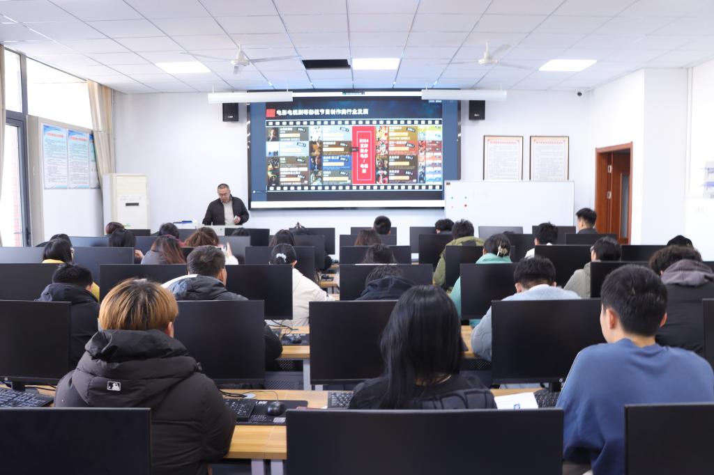 连坤深入剖析了职场提升、大学生就业现状及趋势,详细介绍了技能技术制造、数字文化创意活动等四大核心领域及环渤海等地区的行业分析,同时指出电影电视剧行业大专以上人员占比、产能和技术人员占比逐年上升的现状,为网络与新媒体专业的学生们提供了更多就业机会、技能提升需求及创新创作的机会,有助于他们更好地适应行业发展需求,实现个人职业目标。