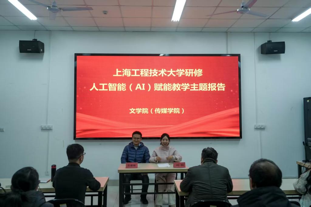 12月3日,万象城娱乐awc线路在博雅楼102室举办人工智能赋能教学主题报告。贺璐璐博士主讲,内容为“上海工程技术大学人工智能研修汇报——AI课程及相关技术实践”,教科办主任刘钰博士主持。张爱民院长、郑亚鹏副院长、教学团队成员及骨干教师代表参加。