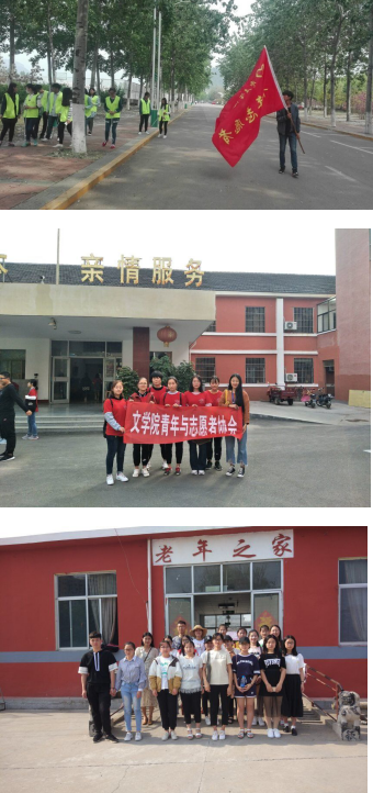 文学院青年志愿者协会成立于2006年11月,社团自成立以来,始终铭记和弘扬“奉献、友爱、互助、进步”的志愿服务精神,在志愿服务道路上不断前进。先后组织参加了由学校承办的“山东省飞行器大赛”的志愿服务活动、前往市中区新宇护理院看望老人、参加由校青协主办的“益路同行”国际志愿者日风采展示活动、主办文学院“城市之间演讲比赛”选拔赛、多次前往市中区福馨敬老院进行服务、植树节举行植树活动、“雷锋月”举行清洁行活动等。在我们文院青年志愿者共同的努力下,文学院青年志愿者协会荣获2018-2019年度“志愿服务先进集体”荣誉称号。
