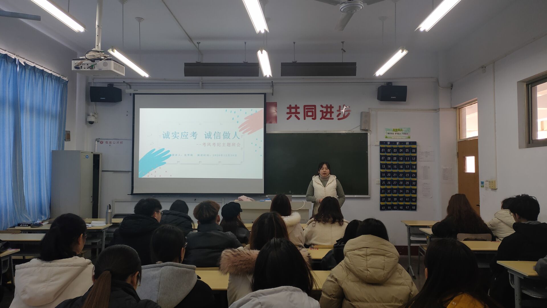 此次班会,增强了同学们诚实守信、积极应考的意识,营造了良好的应考氛围。同时,也有利于培养我院学子良好的学风品德,使同学们积极参与到诚信应考的学风建设中来。
