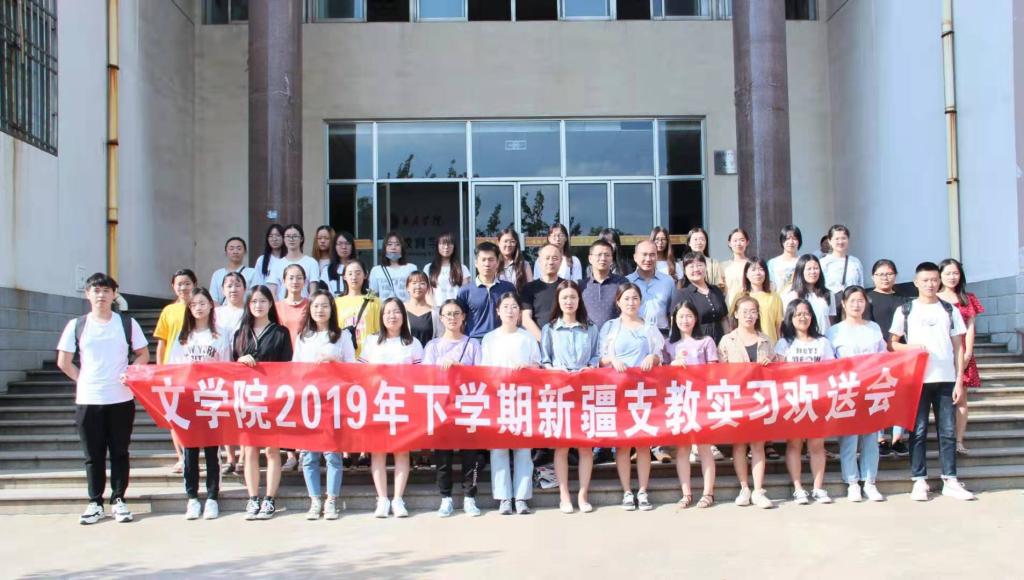 8月30日下午,文学院在文科楼219室举行了2019年下学期新疆支教实习欢送会。学院党政负责人、辅导员老师、2019年新疆支教归来的学生代表及2019年下半年即将奔赴新疆支教实习的44名同学参加了欢送会。院党总支副书记王昌龙主持了会议。