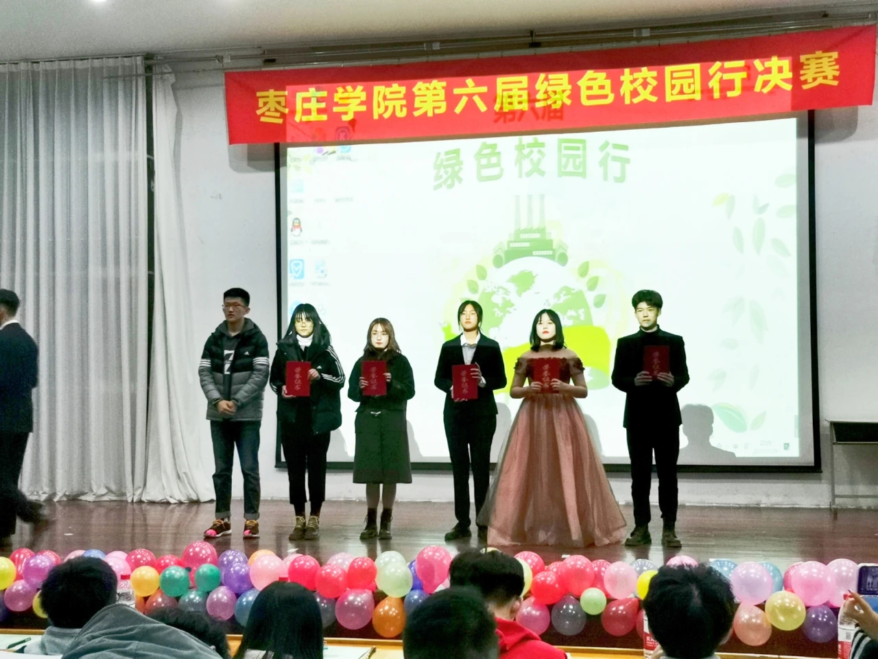 11月29日下午,在文科楼报告厅文学院携院内的优秀作品《生命之海》、《归园田居》与主题牌参加了本次绿色校园行的决赛。在决赛现场,解说员结合ppt与作品实物展示进行解说,更全面、细致地介绍了作品的创作理念与作品特点,充分展现了文学院的创新意识与精神风貌。最终,文学院参赛作品以7.93分获得了优秀奖,王玉如、张嘉恒同学以7.29的解说评分获得了最佳解说员的奖项。