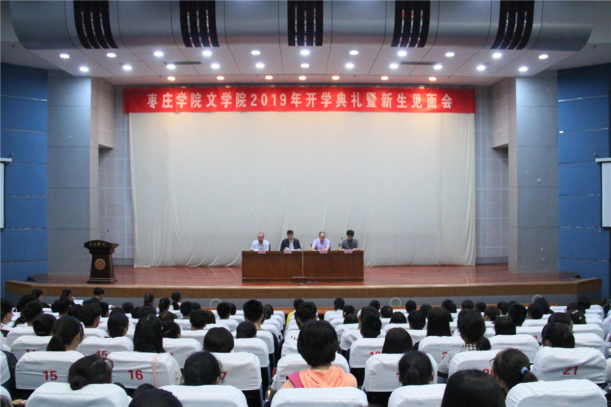 9月23日下午,文学院在综合楼报告厅举行2019年开学典礼暨新生见面会。党总支书记史大丰、院长杨全顺、党总支副书记王昌龙、副院长段圣玉及新生辅导员出席见面会,2019级全体新生参加。会议由党总支副书记王昌龙主持。