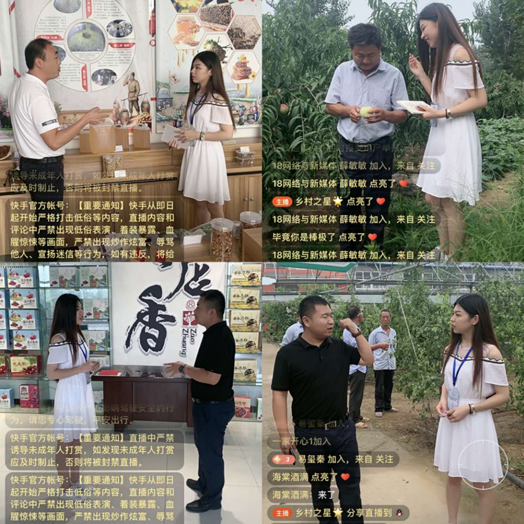 走进直播间,尝试解题方法。7月27日下午,文学院大学生“乡村之星”新媒体咨询服务社会直播团队的同学们在党总支书记史大丰老师的带领下来到山亭区冯卯镇和店子镇,开启了直播助销农副产品的新体验。在冯卯镇先锋驿站,志愿者对冯卯镇的特产地瓜干、桃胶等产品进行了一一介绍,并走进桃林,边摘桃边介绍桃子的营养价值;在店子镇科技示范园,志愿者就特产长红枣的“种类”、“营养价值”、“保质期”、“食用方法”和“适宜人群”等问题,进行了耐心细致的解答。本次直播受到了农民们的一致称赞,“带货”活动成效显著。