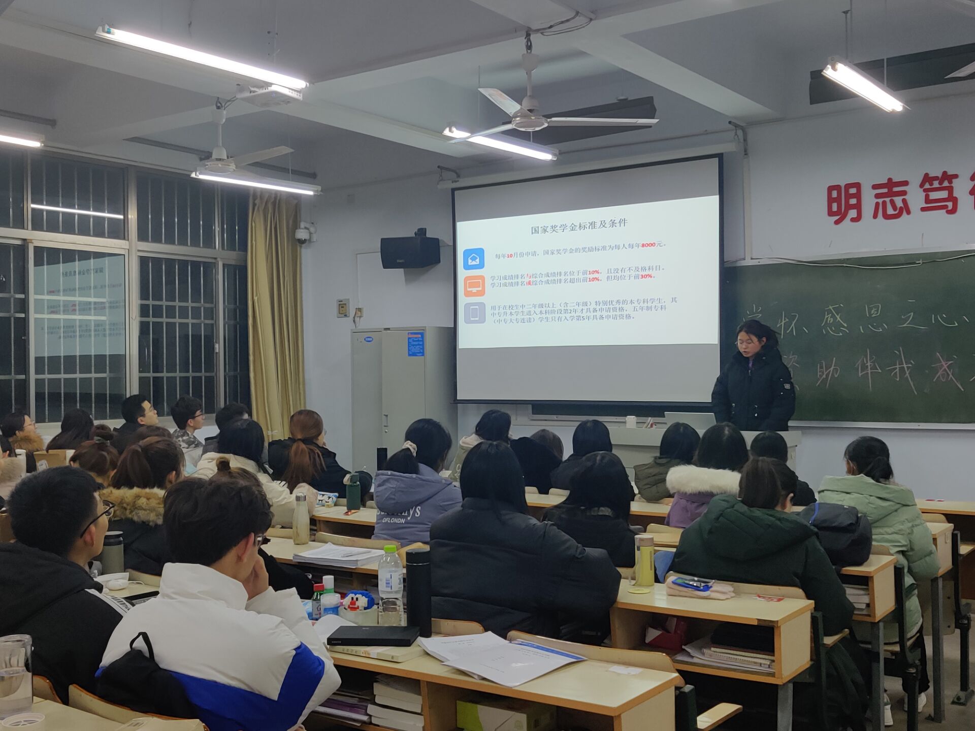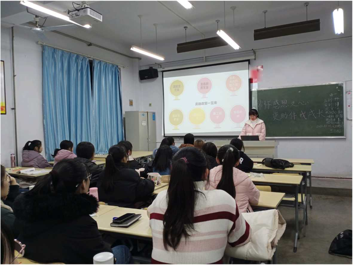 为认真贯彻落实学生资助政策,充分发挥资助育人的功能。12月3日,文学院各班级开展“常怀感恩之心,资助伴我成长”资助政策宣讲主题班会。曾获得学院“资助宣传大使”和“文学院十大励志榜样”的同学们为各班级进行资助政策解读和宣讲,各班学生到场学习。