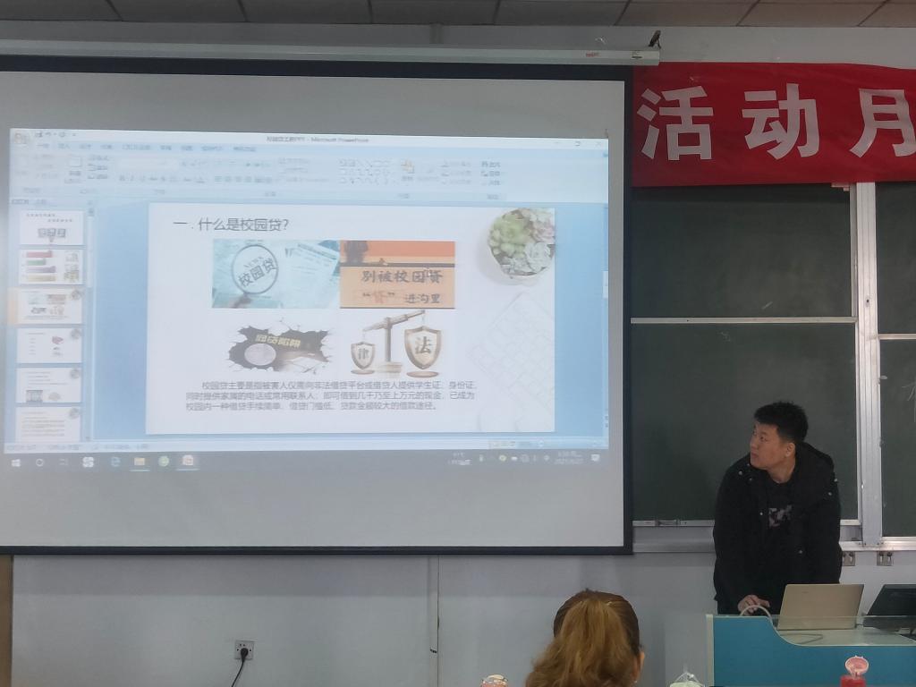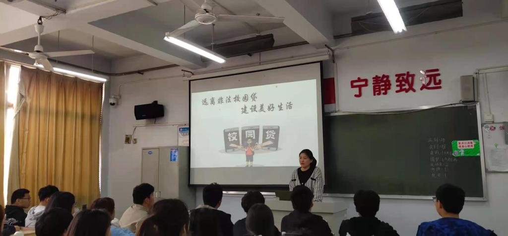 4月27日,文学院开展“远离非法校园贷,建设美好新生活”主题班会活动,本次主题班会由各班辅导员主讲,全体学生到场学习。