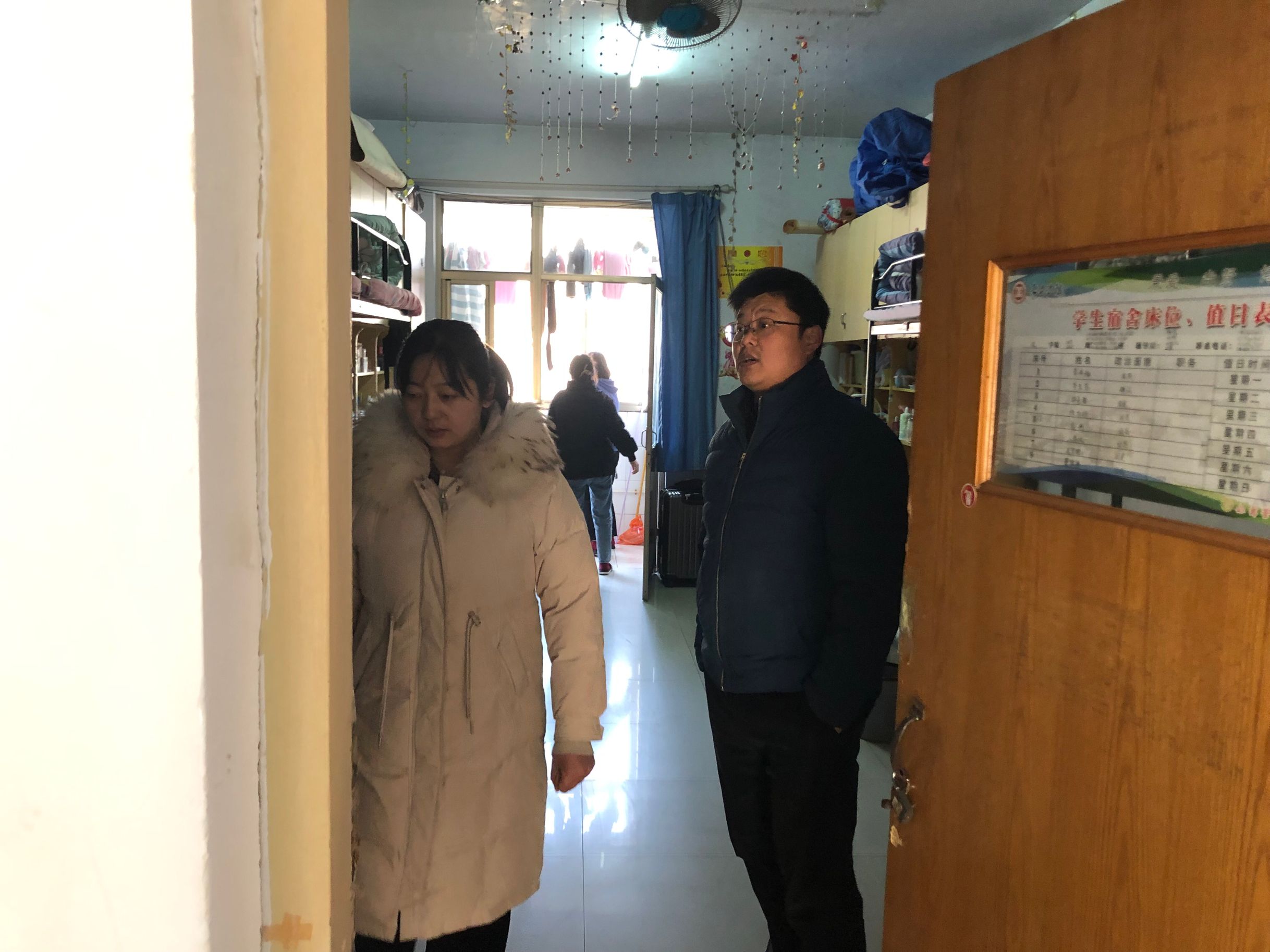 文学院党总支副书记姬广华和全体辅导员对宿舍情况进行了检查。首先,姬广华就宿舍的卫生情况和宿舍用电安全情况做出了简单的评价。其次,姬广华就临近假期的宿舍问题提出几点建议,如切断宿舍电源,清除宿舍易燃易爆品,宿舍卫生打扫干净,宿舍门窗锁好等。需要特别注意的是,要及时进行宿舍安全隐患的排查,离校切断室内电源,以防止安全问题的发生。