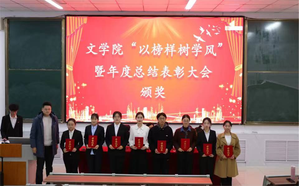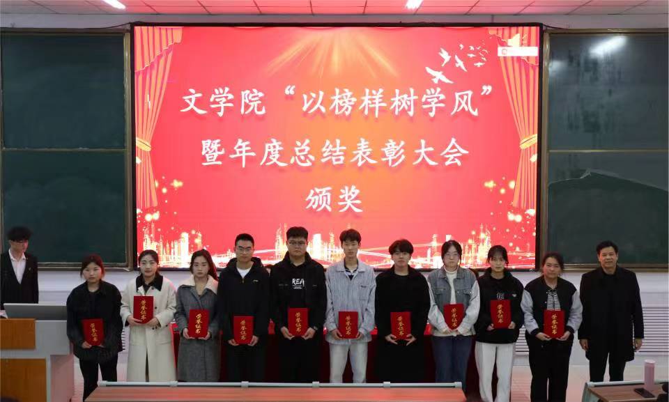会上,华莹宣读了《文学院关于表彰“以榜样树学风”2023年度先进集体先进个人表彰的决定》。参会老师分别为2023年表现突出的17个先进集体和92名优秀个人代表颁奖。学生会主席程晓云、省政府奖学金获得者李星宇依次上台发言,分享自己的学习经验和成长感悟。