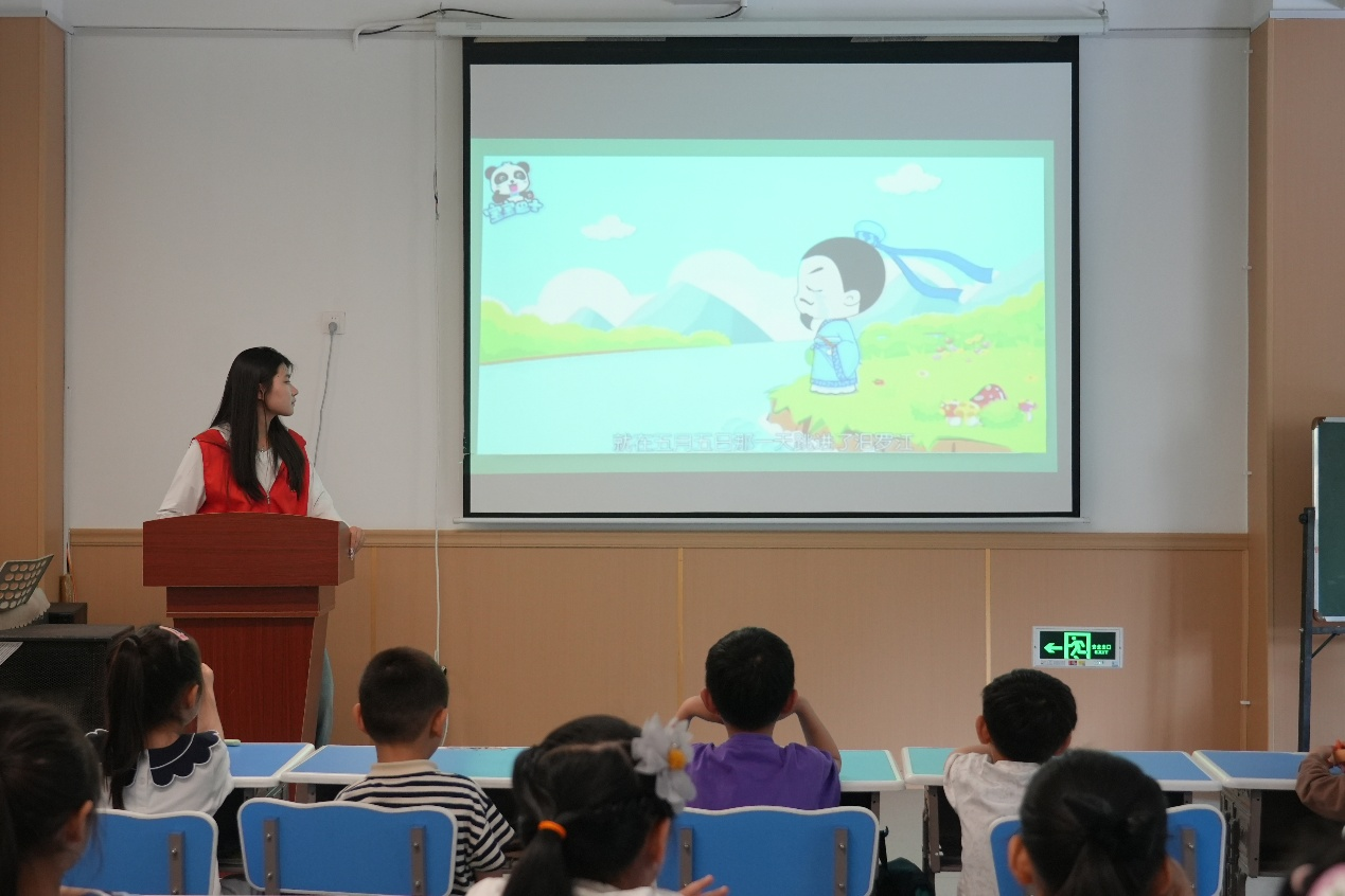 “端午小课堂”上,志愿者用生动语言讲述端午节由来、习俗,展示相关图片视频,让孩子们直观认识传统节日。互动问答环节,孩子们踊跃发言,表现优异者获赠小奖品,热情高涨。