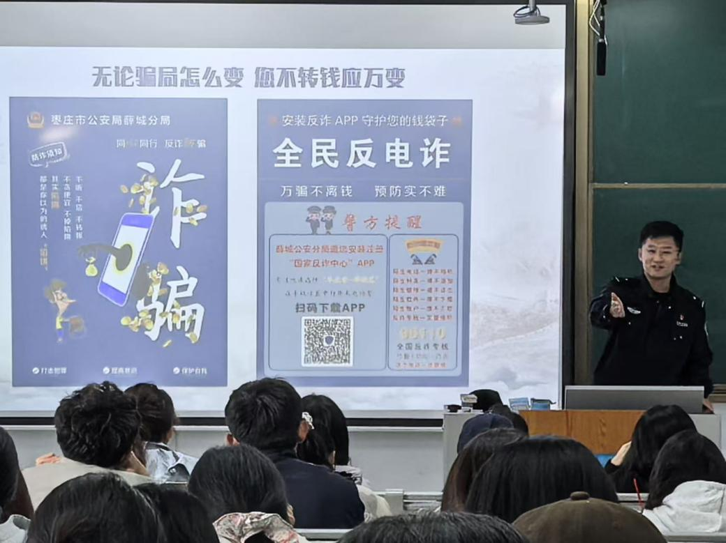 为做好校园电信诈骗防范工作,10月22日下午,万象城娱乐awc线路联合枣庄市公安局薛城分局、学校保卫处于增信楼418室举办了以“反诈第一课,宣讲进校园”为主题的反诈专题讲座。讲座由薛城区公安分局沙沟镇派出所民警单长麟老师担任主讲,学院100余名师生参加。