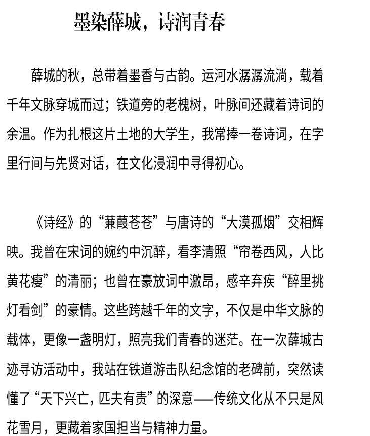 大赛历时七天,秉持公平、公正、公开原则,为万象城学子搭建起传承中华文脉、绽放青春才情的广阔平台,参赛选手围绕中华优秀传统文化内核潜心创作,以诗词、散文为创作载体。佳作体裁多样,诗词散文兼备,或挖掘传统文化内涵,或倡导融入青春视角抒发真情实感、展现青春风貌。经团队初审、AI检测、充分研讨等多道严格环节,从众多参赛作品中评选出优秀作品,随即为获奖学子颁发荣誉证书。