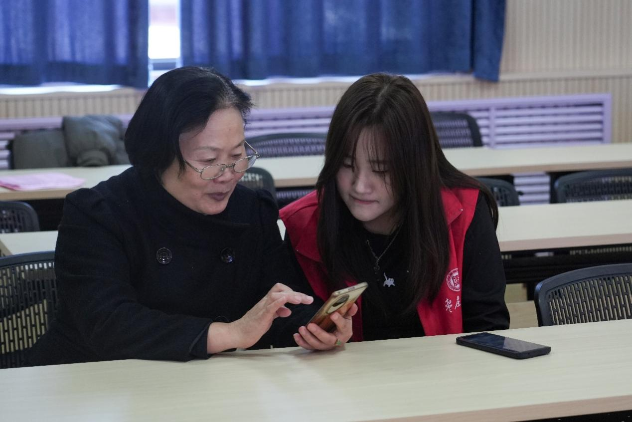 此次活动围绕宪法宣传、智能AI软件教学、反诈知识宣讲有序推进。志愿者们与老人结成一对一帮扶小组,手把手协助老人操作AI智能软件和智能手机,从基础功能到实用技巧,耐心为老人讲解,帮老年群体轻松跨越“数字鸿沟”。