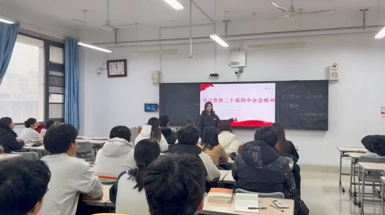 活动中,各班团支书结合精心制作的PPT课件,围绕党的二十届四中全会的召开背景、重大意义、核心部署与实践要求展开系统宣讲,通过播放专题短片、解读政策要点图解、分享权威媒体评论文章等多元形式,将会议提出的新思想、新论断、新举措与文学、传媒等专业领域的发展实际相结合,让同学们清晰把握会议对文化建设、媒体融合、青年发展等领域的战略规划。现场学习氛围浓厚,有效激发了同学们以理论武装头脑、以行动践行使命的主动性与自觉性。