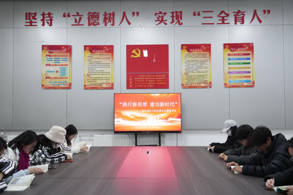 活动现场,青年学子围坐在会议桌前,手持相关书籍静心阅读,整个会场沉浸在浓厚的书香氛围中。大家紧扣“青年成长与社会责任”的主题,在文字里探寻新时代青年的使命坐标,在书页间思考个人成长与社会发展的关系。青年学子或专注研读经典篇目,用笔圈划触动内心的语句;或结合专业视角,在阅读中梳理践行社会责任的路径方向,在阅读中沉淀自我、凝聚奋进力量。