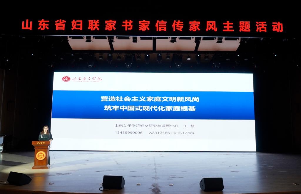 活动中,集体观看了《注重家庭注重家教注重家风》宣传片。中石化胜利油田石油开发中心有限公司科研所高级工程师王清作《一千零一封家书》主题报告,并与大学生们就树立正确婚恋观及建设幸福家庭等问题进行交流探讨;山东女子学院妇女研究与发展中心副主任、教授王慧作了题为《营造社会主义家庭文明新风尚筑牢中国式现代化家庭根基》的家风专题辅导报告。