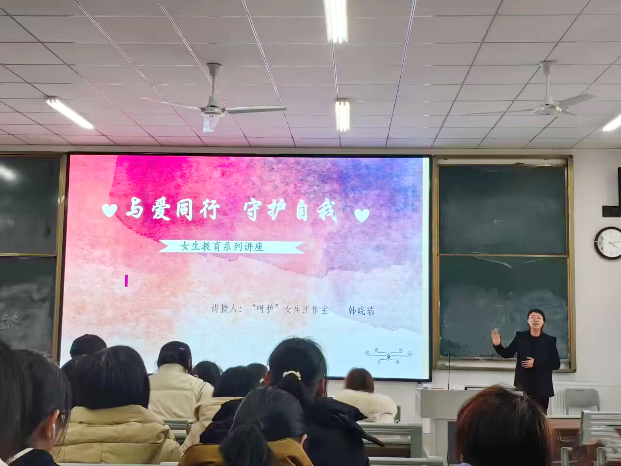 为增强女大学生自我呵护和自我关爱意识,传播健康理念,更好的普及女性健康保健知识,提高女性的身体健康素质,文学院于11月22日和11月30日邀请“呵护”女生教育工作室讲师韩晓瑞老师,在崇德楼208教室开展了两场“与爱同行,守护自我”女生教育专题讲座,文学院200余名女生参加。