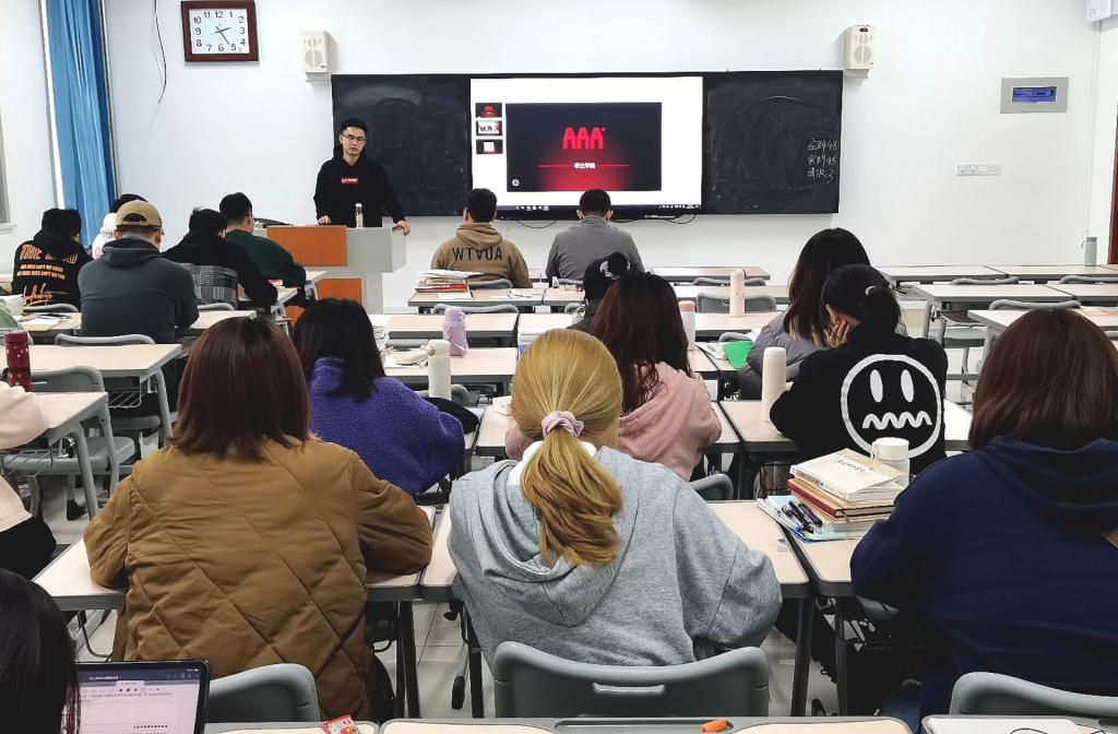 宣讲会伊始,刘老师针对网络与新媒体专业当前的就业形势、就业政策及就业发展情况作了简单的介绍和分析。接着,刘老师详细介绍了公司的基本情况、核心业务、发展现状、招聘岗位和福利待遇。最后,刘老师结合工作中的实例与同学们分享了自己在AAA数字教育的就业经历和入职经验。在场同学认真聆听,积极与老师互动,现场氛围轻松愉快。