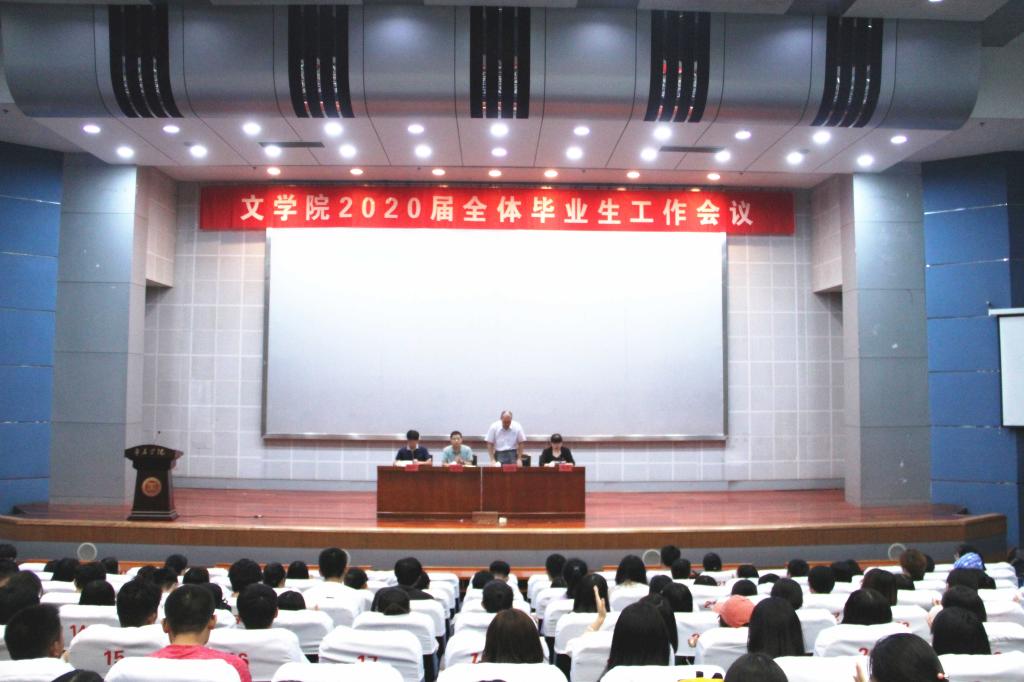 为进一步做好2020届毕业生各项工作,加强学生安全工作管理,促进就业工作稳步推进,9月6日下午,文学院在综合楼报告厅召开了2020届全体毕业生工作教育会议。文学院全体辅导员及2020届全体毕业生参加会议,会议由团总支书记韩笑主持。