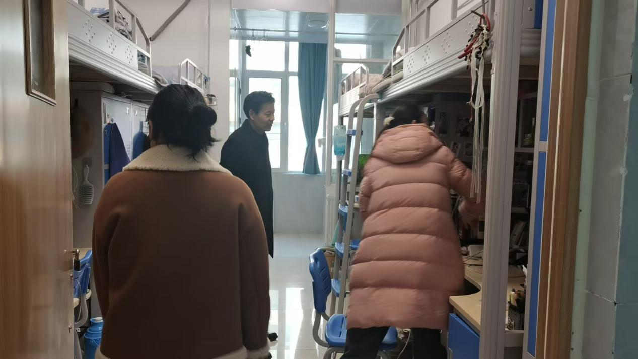 2月26日上午,在宋明峰书记带领下,先后对1、2、4、9、10、13、15号楼6栋学生公寓号开展了安全检查。重点检查了公寓消防栓、电器设备、线路开关及物品摆放等隐患。对宿舍内违规电器使用、私拉电线、人走未断电等问题进行了排查。对宿舍卫生环境,阳台杂物堆积等现象提出了改进要求。要求围绕学生需要加强“一站式"社区建设,为同学们提供安全舒适的生活环境。