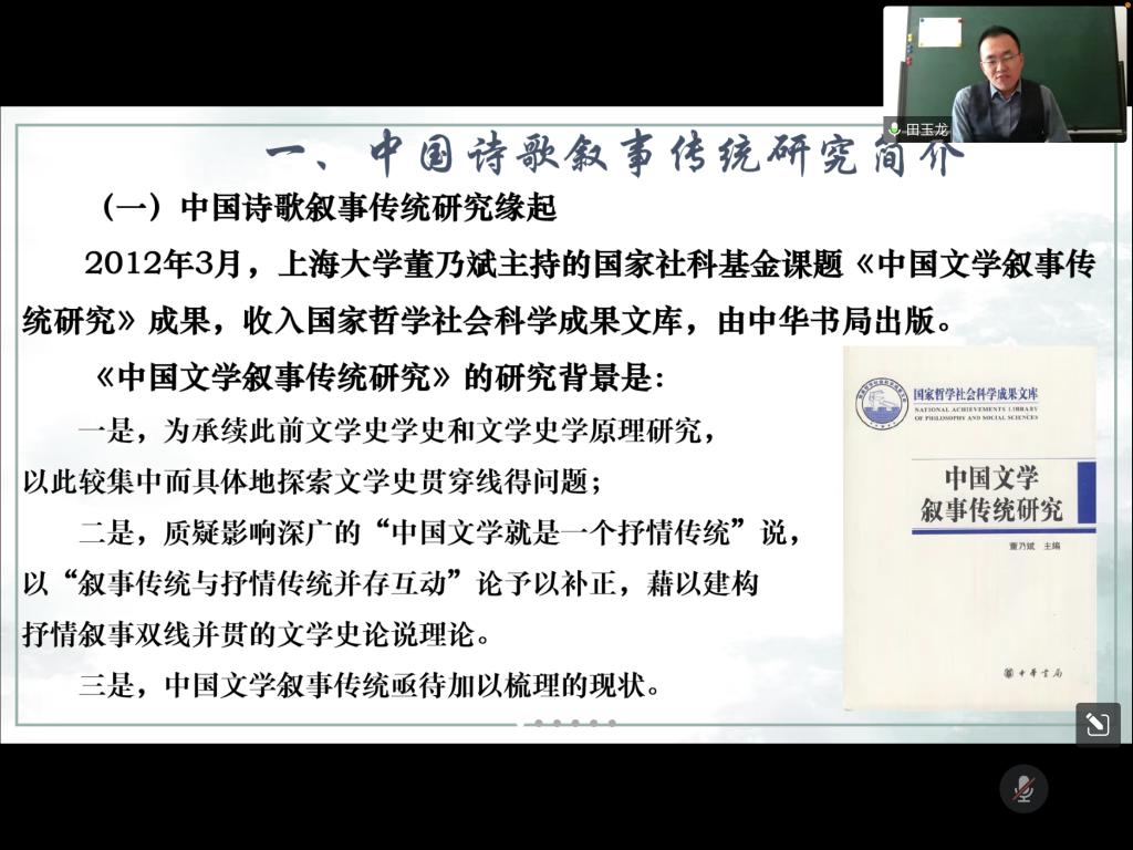 11月30日下午,文学院举办了第六期青年学者学术论坛,文学院教师田玉龙博士作了题为《从明诗看古代诗歌的叙事性特征》的学术报告。学术论坛由文学院程志副教授主持,文学院全体教师及部分学生参加了线上报告会。