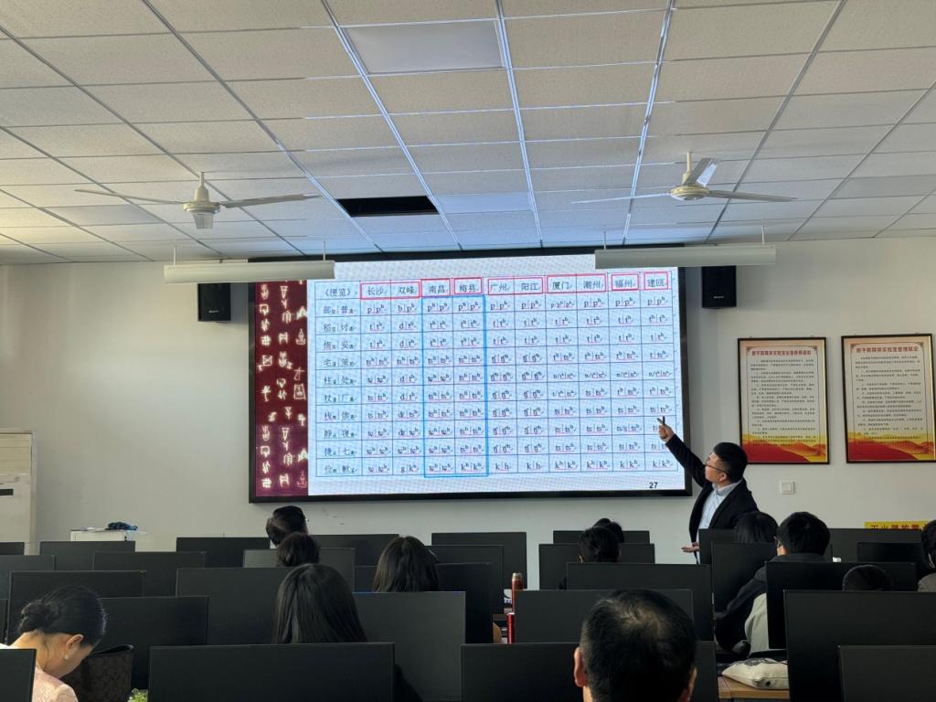 为提升文学院科研水平,推进有组织科研,加强科研团队建设,10月23日下午2:00,文学院在薛城校区豁然楼A417教室举办第十七期青年学者学术论坛,张凯博士作了题为《<同音集字便览>文献三题及其语音性质》的学术报告,文学院全体教师与会听取报告。