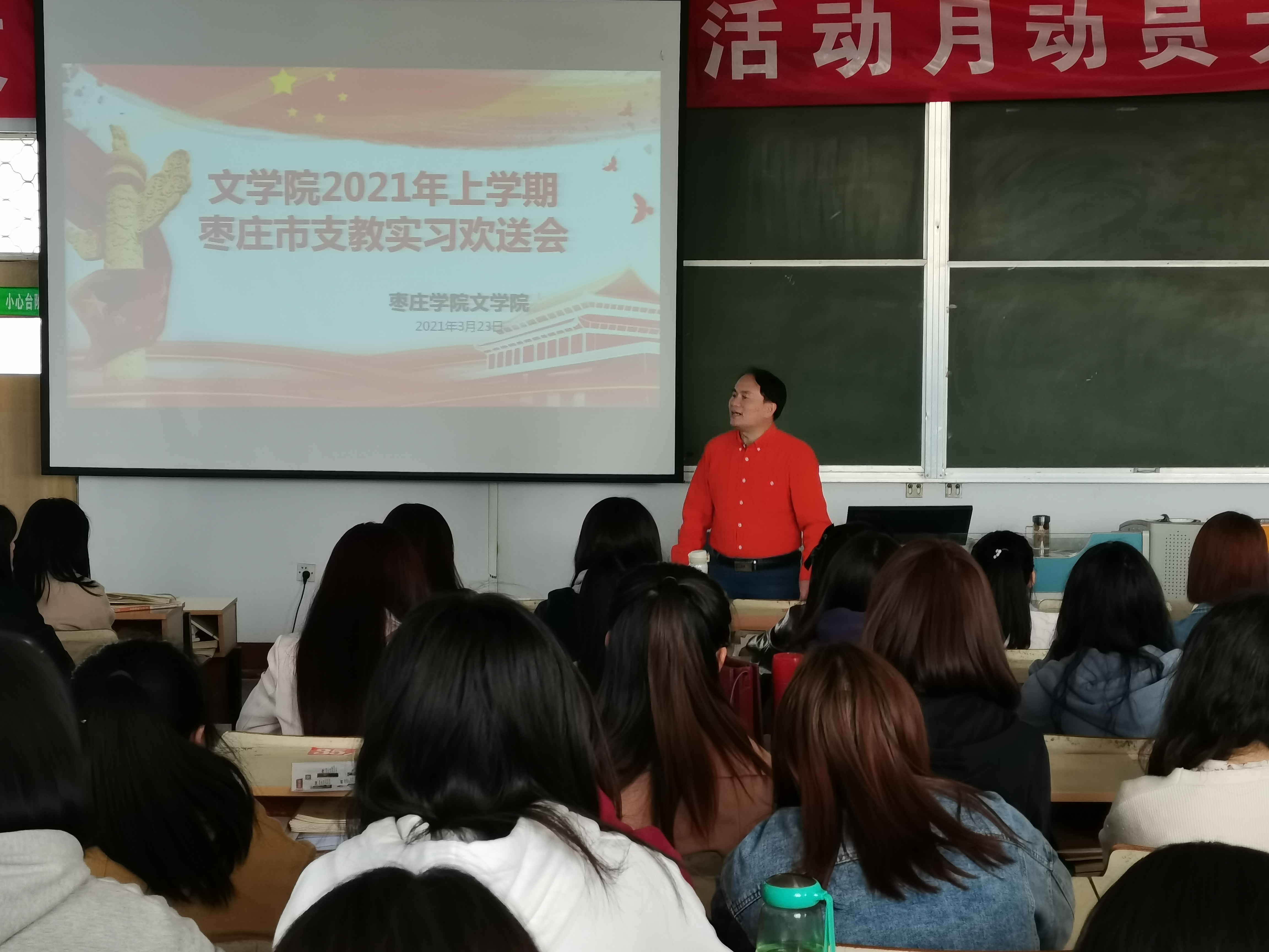 3月23日下午,文学院在文科楼217教室举办了2021年上半年枣庄市支教实习欢送会。本次欢送会由文学院党总支书记宋建修主持,即将奔赴枣庄各市区支教的学生到场参加。