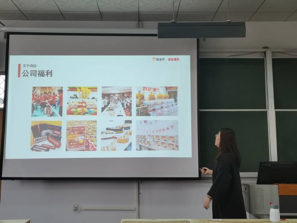会上,杨冬冬就高途课堂的公司前景、企业氛围、公司城市分中心、职业晋升等情况向同学们做了详细的讲解,在讲解的过程中,杨冬冬突出讲解了在线教育行业打破了地域限制,使教育资源配备更加优质化的特点。杨老师细致的讲解让在场同学们充分了解到该行业未来良好的发展前景。