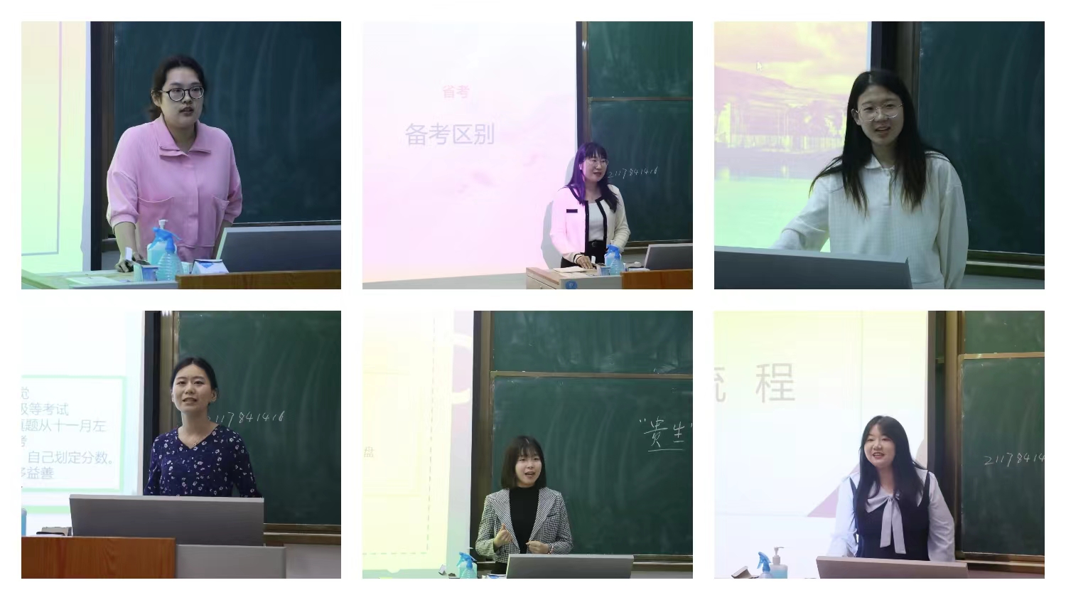 交流会上,四位考研成功的同学从自身的专业和实际情况出发进行交流,施玉新和李俊婕两位同学详细讲解了如何备考政治、英语和专业课的策略和过程,寇东宇和高航重点分享了自己的考研作息、备考规划、心态调整、复试技巧等方面,她们提醒大家要劳逸结合,注意时间管理,做好规划,认真备考。作为考公成功的代表,王春美从考取公务员的备考经历、失败总结、心路历程、经验分享四方面进行交流,她建议大家在面对考试失败时不要气馁,要不断反思自己,总结经验教训。最后,韩如向同学们分享教师技能大赛以及教师编上岸的经历,就大赛流程、备赛经验、面试流程、面试技巧四个方面进行分享,她告诫大家要多读书、多积累、多练习,明确目标,坚定信心,做足充分的准备。在现场提问环节中,同学们就自身考研、考公、考教师编中遇到的困惑和问题与师姐们进行交流,师姐们也给出了耐心的解答和中肯的建议。